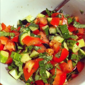 Accompagner d’une salade fraiche de tomates, concombre et persil