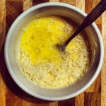 Dans un second bol, battre légèrement les oeufs. Ajoutez-y le parmesan ainsi que beaucoup de poivre. Allez-y selon votre goût bien évidemment, mais votre mélange d’oeufs devrait laisser transparaitre la présence du poivre.