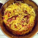Puisque ces pâtes ne requièrent que très peu d’ingrédients, prenez la peine de choisir d’excellents produits. Optez pour une pancetta fumée avec peu de gras, plutôt que d’utiliser du bacon ordinaire, je vous promets que ça fait toute la différence ! Personnellement, j’achète la pancetta de Scotstown de chez Le Maitre Boucher dans le village Monkland à Notre-Dame-de-Grâce. Elle est presque dépourvue de gras, pas trop salée et son parfum fumé est d’une perfection hors de ce monde ! Aussi, je vous suggère de râper vous même le parmesan plutôt que de l’acheter déjà préparé. Le fromage sera ainsi moins sec et contribuera à rendre votre sauce divinement crémeuse et savoureuse !