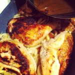 Mélangez tous les ingrédients pour la marinade d’abord, et ensuite réservez. Couper votre poulet en morceaux et les disposer dans une lèchefrite. Ajouter la marinade et bien distribuer les oignons uniformément entre les morceaux, puis ensuite recouvrez d’une pellicule plastique et réfrigérez. Pour un résultat optimal, prenez le temps de faire bien mariner le poulet. Idéalement, le poulet devrait mariner pendant 2 à 3 heures, mais évidemment si vous n’avez qu’une heure devant vous, le résultat sera très bon!