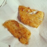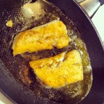Dans un poêlon, versez 1/4 de tasse d’huile d’olive et la faire réchauffer. Ajouter les morceaux de poisson et les faire cuire jusqu’à ce qu’ils soient bien dorés (environ 4 minutes) de chaque côté. Une fois les morceaux dorés, retirer les morceaux du poêlon et les déposer sur du papier absorbant, tout en les gardant à la chaleur.