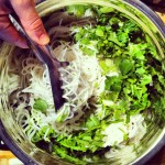 - Si vous préparez la salade à l’avance et que vous la réfrigérez, avant de servir laissez la salade à la température pièce. Ça permettra aux nouilles de riz de se détendre un peu.