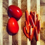 - 3 tomates italiennes coupées en quartiers (sur la longueur)